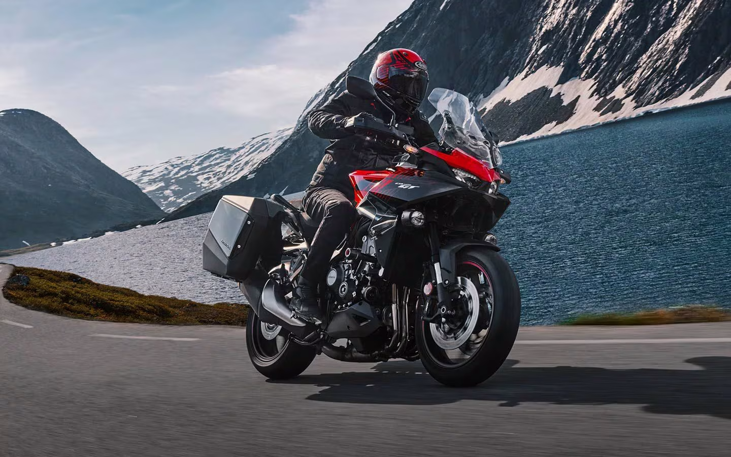 زاویه ریک همان ۲۵ درجه باقی مانده، اما میزان تریل به ۴.۲ اینچ افزایش یافته و بازوی عقب بلندتر شده است. نتیجه این تغییرات، افزایش فاصله محوری به ۵۷.۷ اینچ و پایداری بیشتر در سرعتهای بالا است؛ ویژگیای که برای یک تورر اسپرت اهمیت زیادی دارد. سیستم ترمز نیسین با دیسکهای ۳۱۰ میلیمتری جلو و پشتیبانی از ABS تطبیقی، وظیفه مهار این موتورسیکلت را بر عهده دارد.