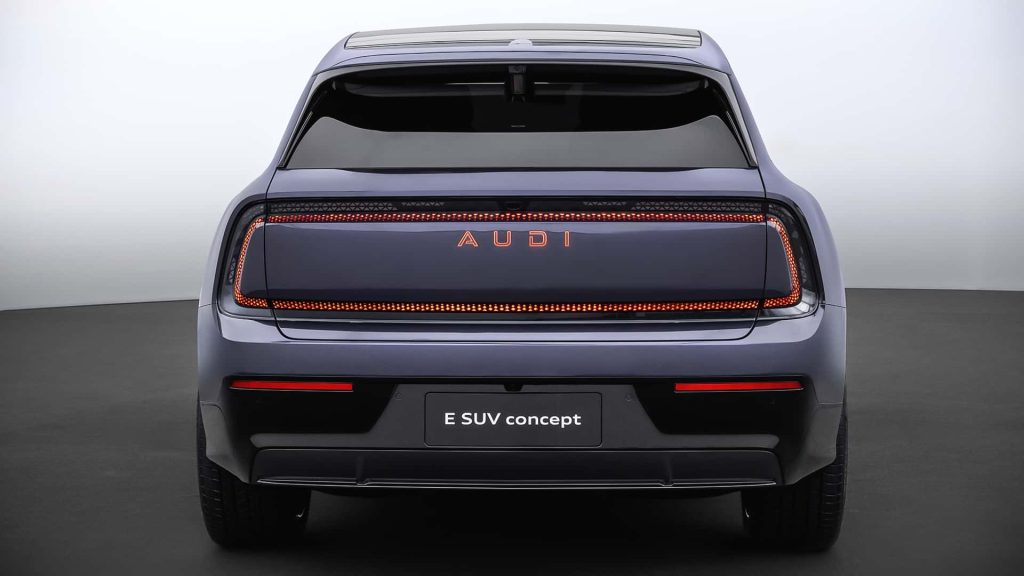 از نظر طراحی، هیچ شباهتی به مدل‌های جهانی آئودی ندارد و همان زبان طراحی مخصوص برند AUDI را دنبال می‌کند؛ زبانی که شامل دوربین‌های جانبی، لایدار روی سقف، دستگیره‌های مخفی درب و چراغ‌های C شکل است. لوگوی بزرگ AUDI که جای حلقه‌ها را گرفته نیز هنوز کمی عجیب به‌نظر می‌رسد.
