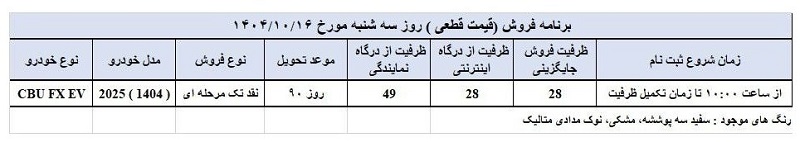 جدول شرایط فروش فوری فونیکس FX برقی (دی ۱۴۰۴)