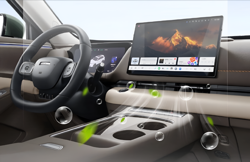 سیستم صوتی با ۱۰ بلندگو، شیشههای دوبل ضدصدا، تصفیه هوای کابین، دستیار صوتی، و ۲۸ محفظه نگهداری وسایل از دیگر ویژگیهای داخلی هستند. صندلیهای عقب نیز با فشردن یک دکمه کاملاً تخت میشوند تا فضای بار افزایش یابد.