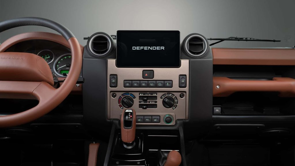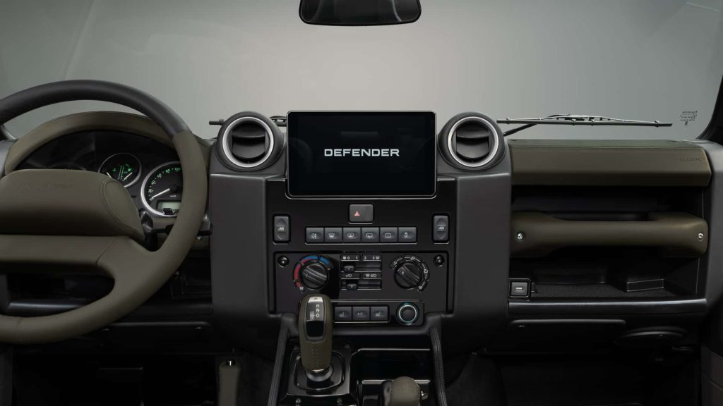داخل کابین نیز همان مسیر ادامه پیدا میکند. خریداران میتوانند همان ترکیبهای چرم و پارچه نسخه Octa را برای دیفندر کلاسیک انتخاب کنند. بسته به نوع متریال، رنگهایی مانند Khaki Green، Light Cloud، Lunar، Burnt Sienna و Ebony در دسترس است و این پوششها علاوه بر صندلیها، برای سقف، رودریها، داشبورد، دستهدندهها و فرمان نیز قابل استفاده هستند.