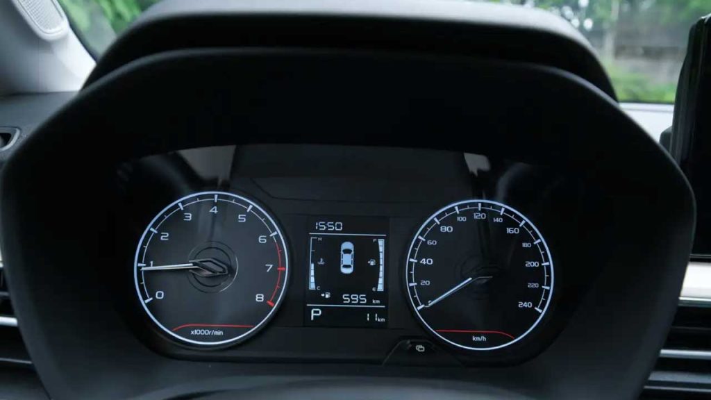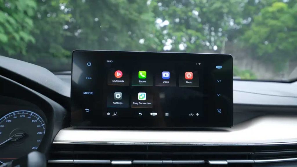 داشبورد نیز از پلاستیک خشک استفاده میکند، اما استفاده از پلاستیک طرحدار با رنگ روشن در بخش میانی داشبورد، به داخل کابین حس تازگی میبخشد. نمایشگر ۸ اینچی سیستم مالتیمدیا با کیفیت مناسب، امکان دسترسی به تنظیمات مختلف خودرو را فراهم میکند.